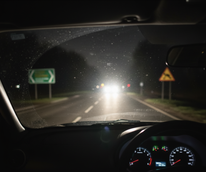 The increasing issue with Modern LED headlights is that they are brighter than old halogen bulbs, emitting blue-white light that can cause issues for drivers. A dirty windscreen can also make LED glare even worse, reducing visibility and making it harder for tired eyes to focus, as they take longer to recover from sudden brightness.