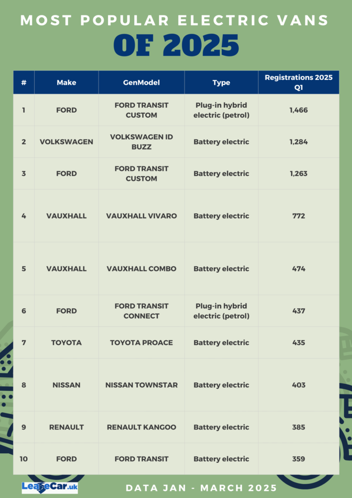 A few plug-in hybrid vans make the top 10 for 2025, but don’t feature in the all-time registration list.